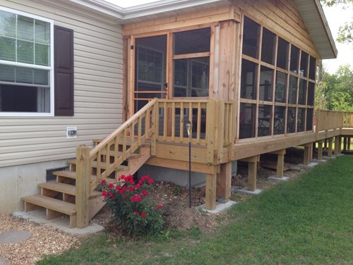 The design of SafePorch shelters allows it to be placed right at the doorway of the home, allowing it to become the front or back porch, with the convenience and safety of a storm shelter at your doorstep. They also can be placed along side exsisting decks and porches as an extension or have decks built over the top of them for quick easy access.